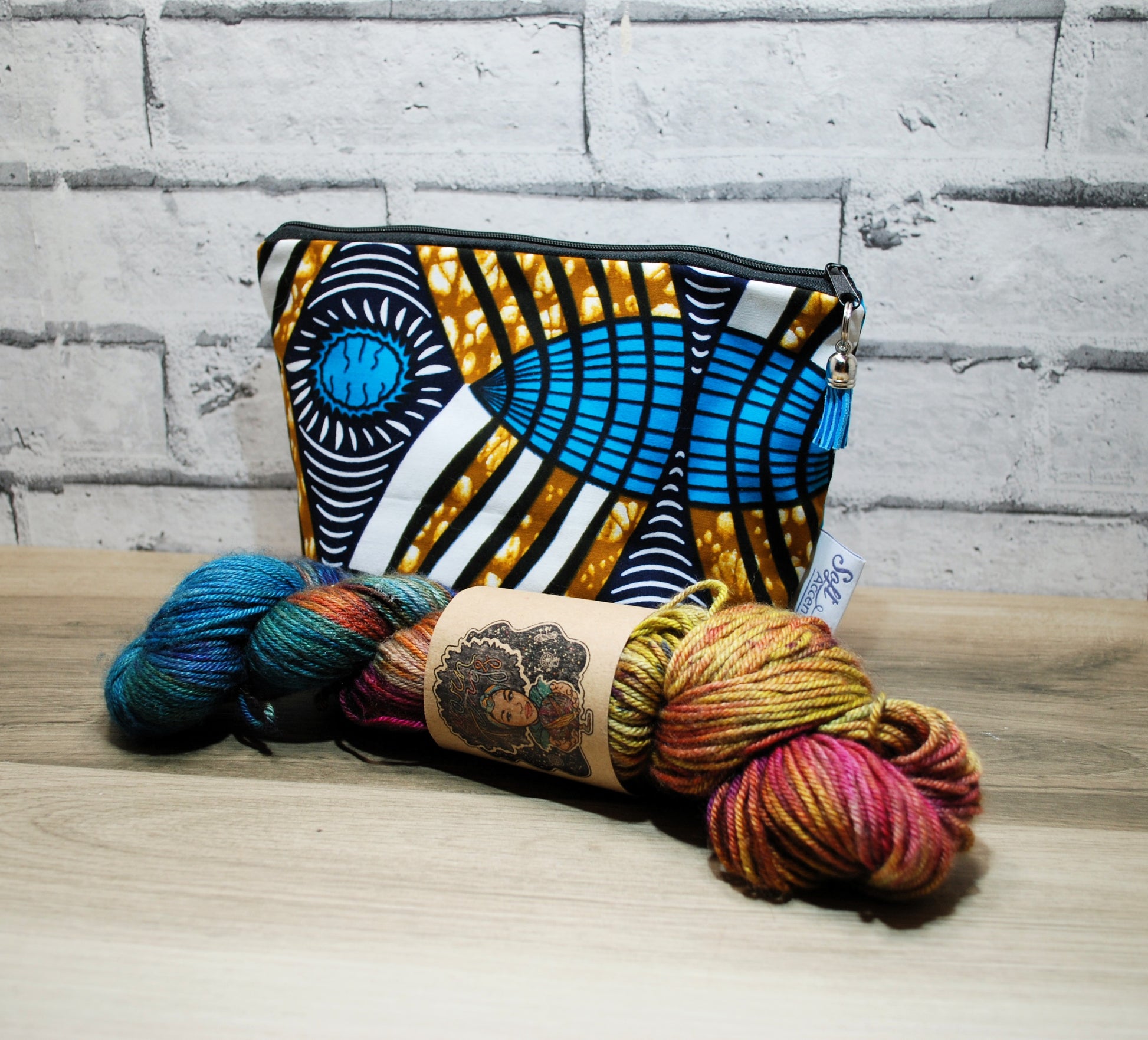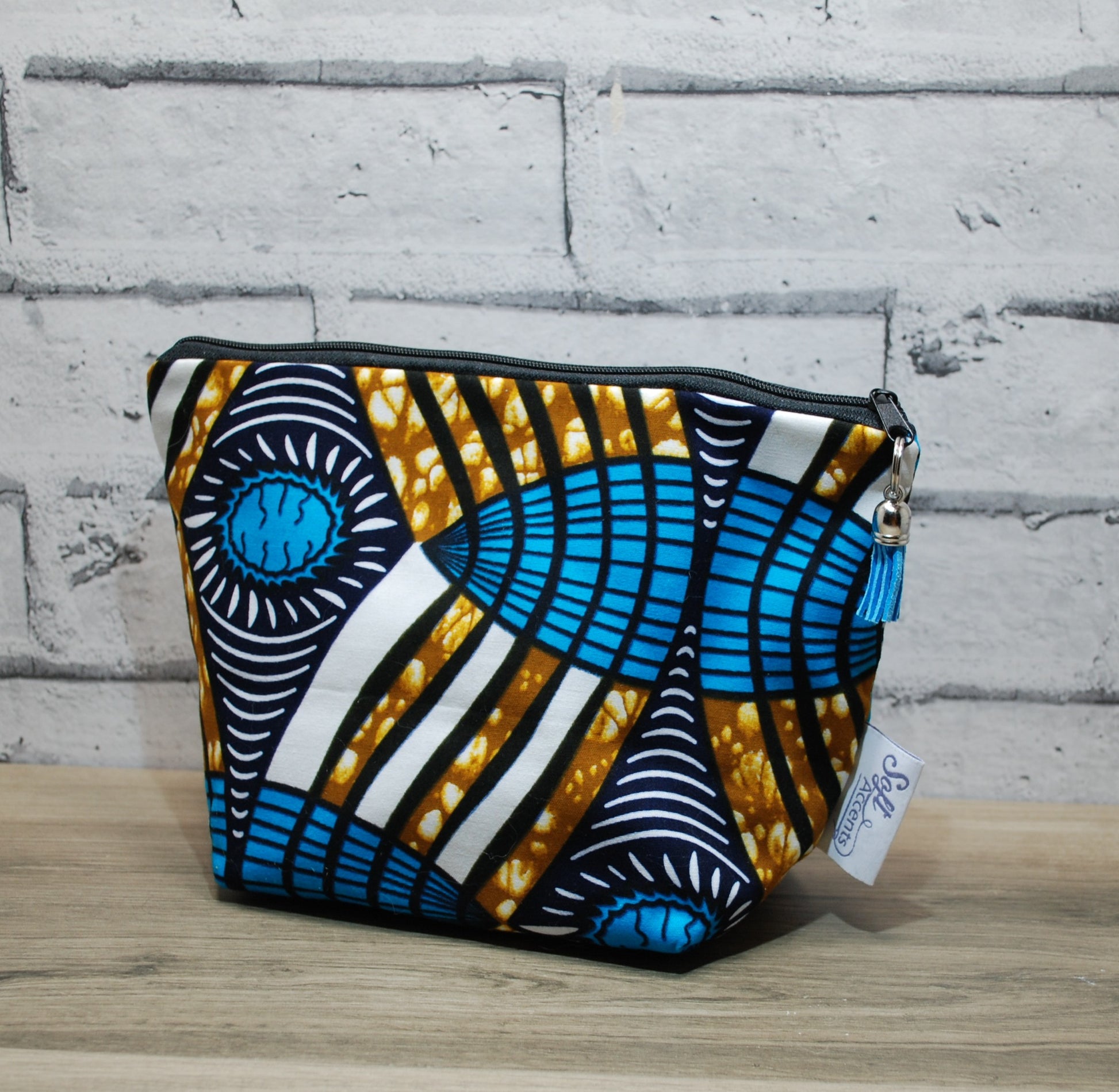 Abstract African print fabric medium zipper pouch makeup bag