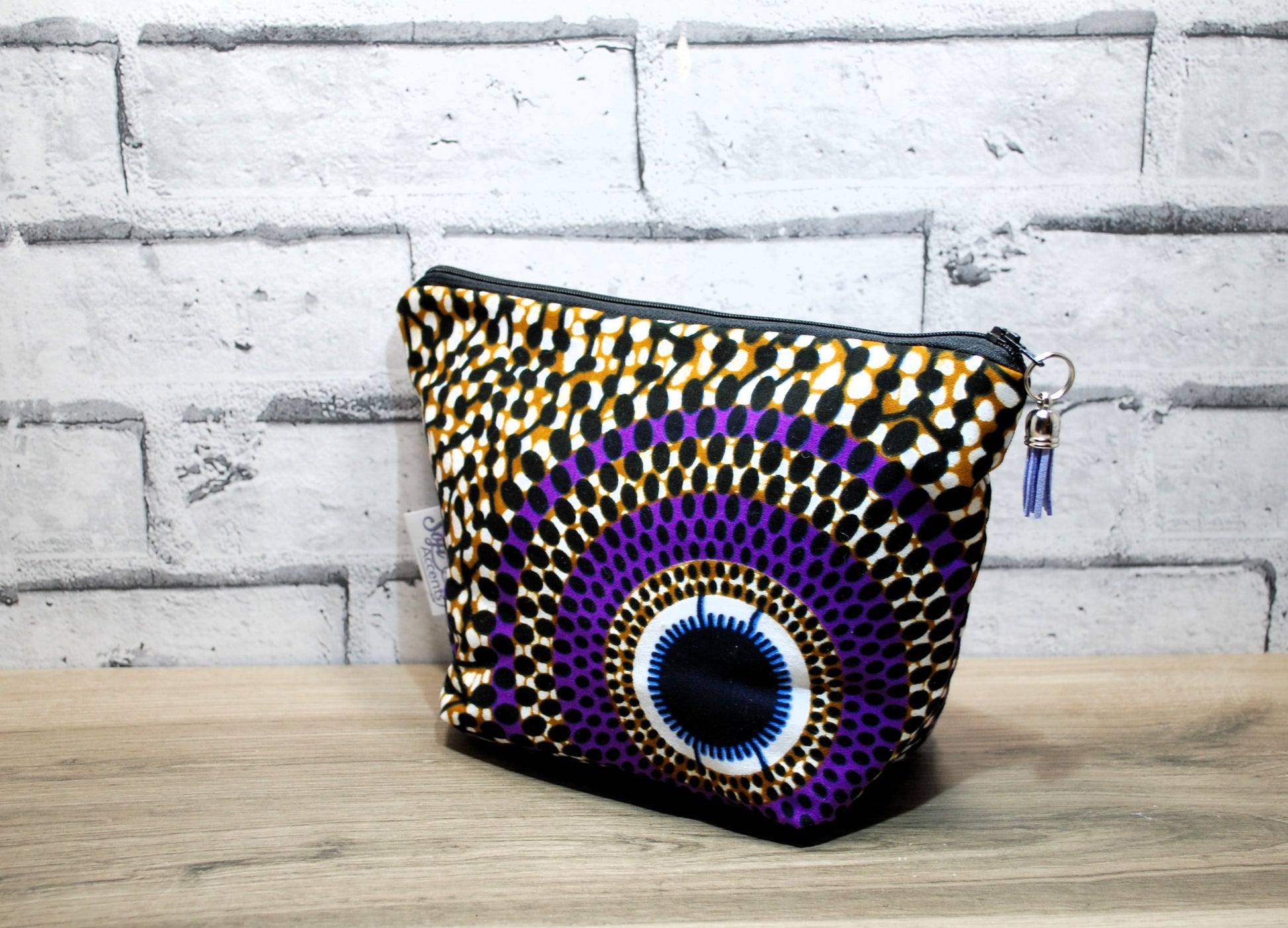 Abstract African print fabric medium zipper pouch makeup bag