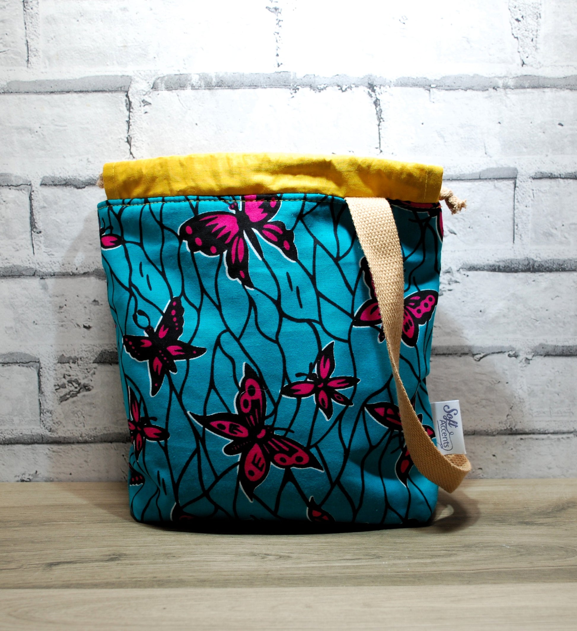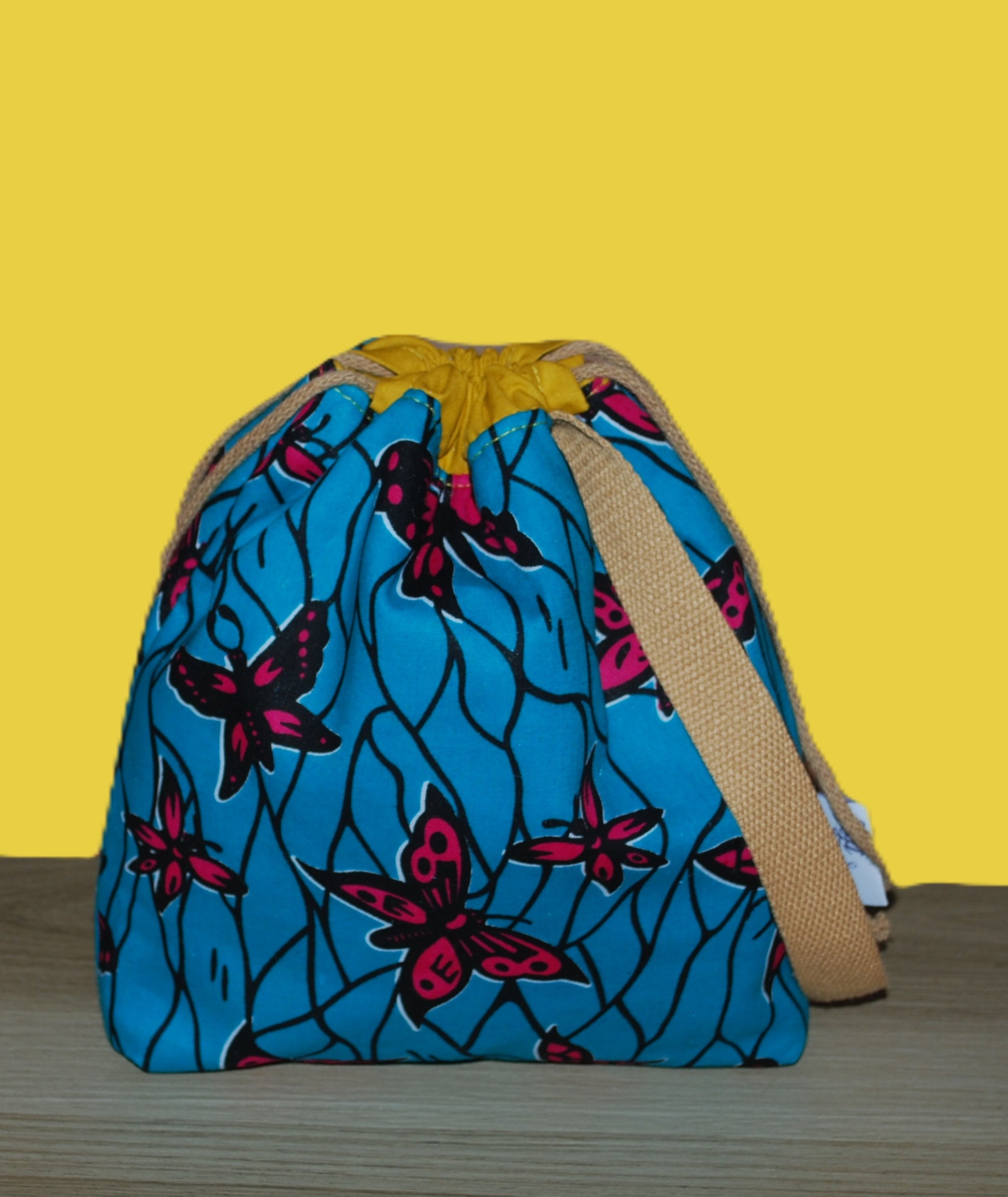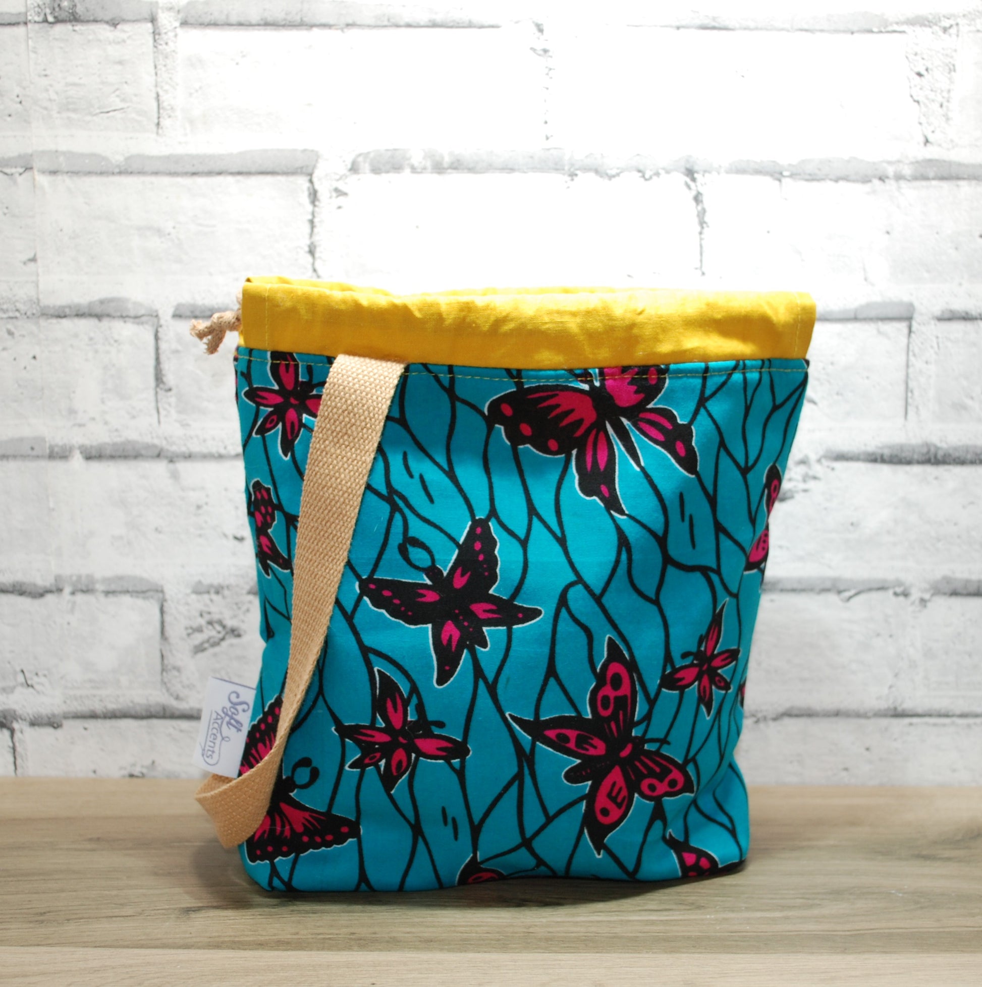 Carry your knitting or crochet in style with this beautifully crafted drawstring closure African Wax Print project bag.