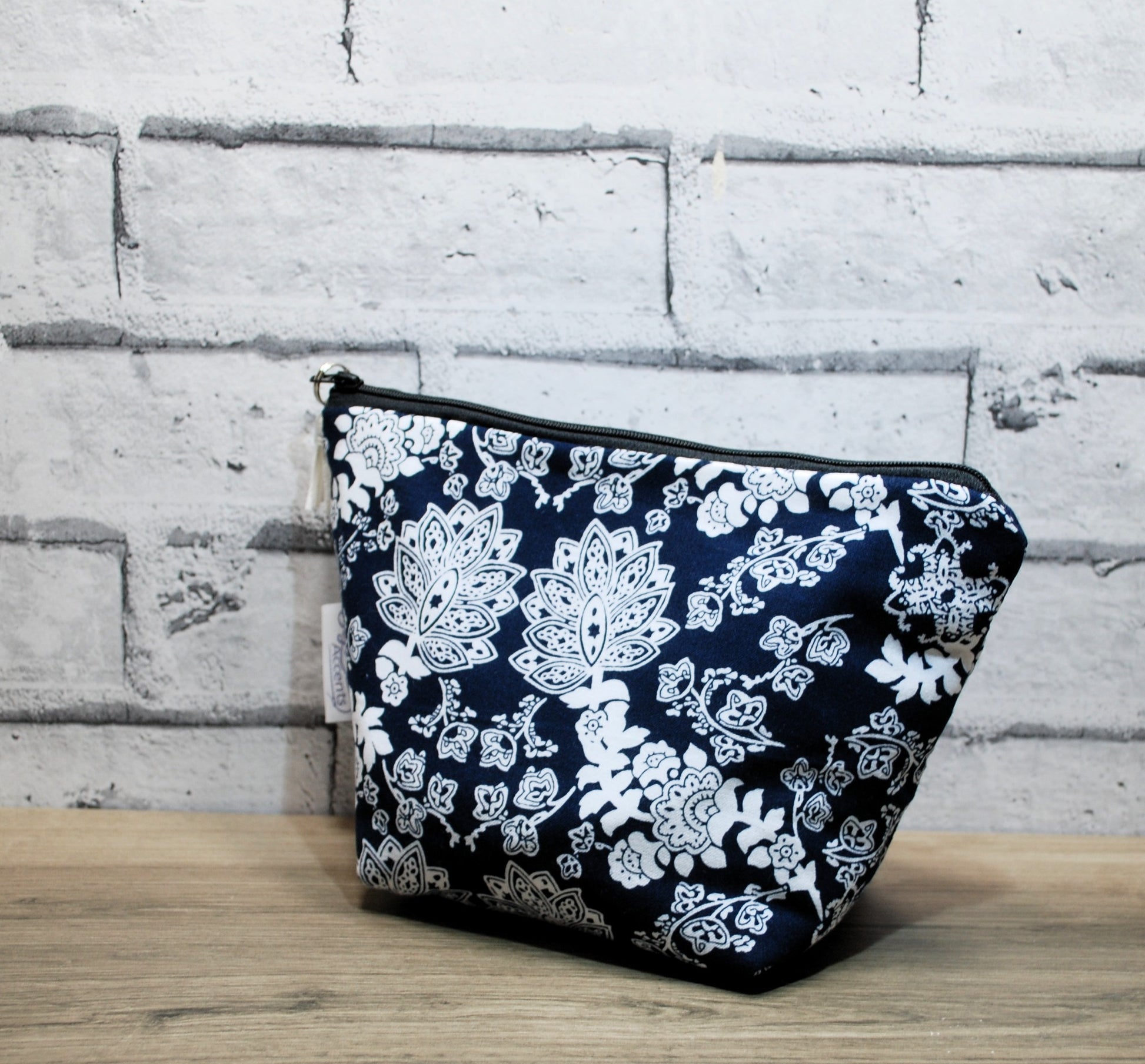Cotton fabric, Wipe clean PVC lining, Polyester wadding, Faux suede tassel, Woven label, Nylon zip