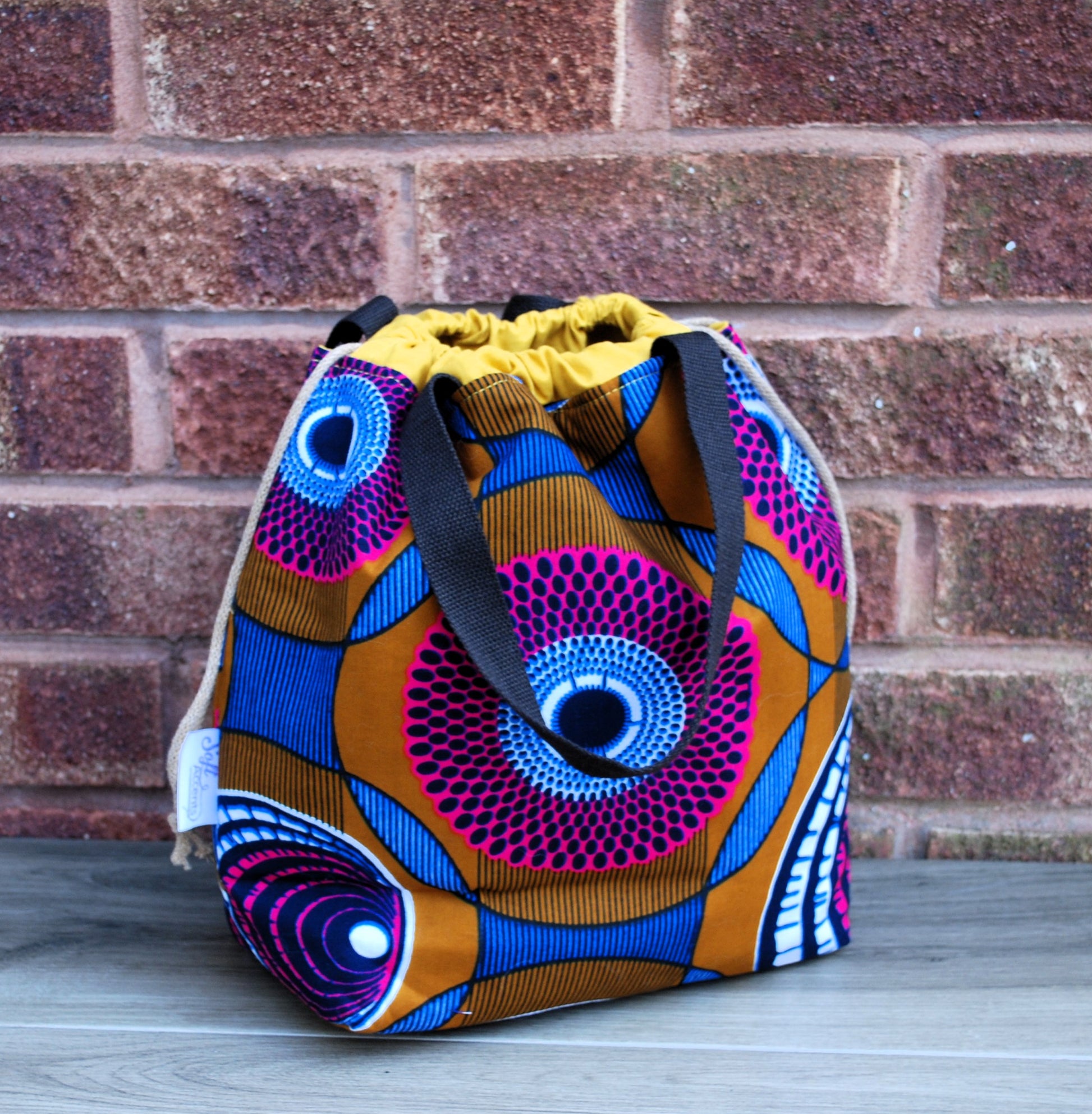 African print cotton, Cotton lining fabric, Cotton drawstring cord, Cotton webbing straps, Woven label